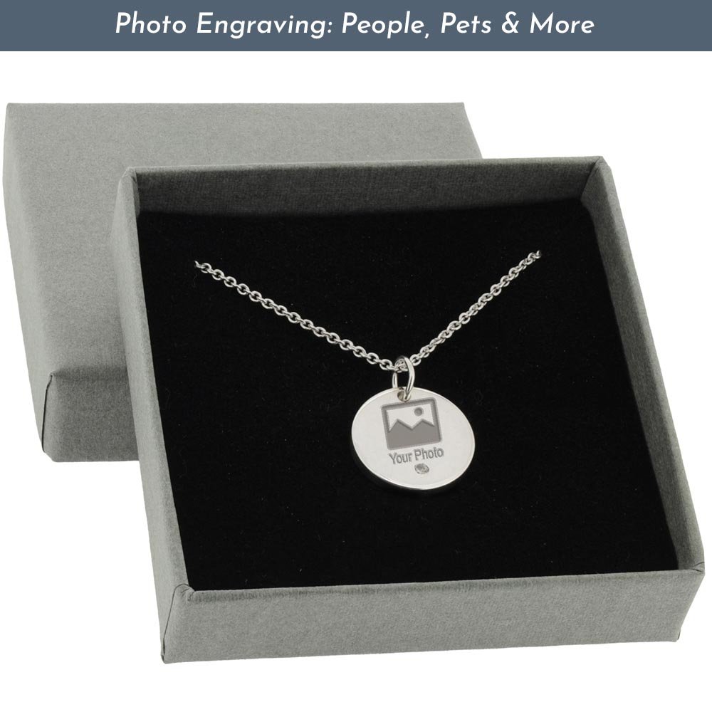 Transform your cherished moments into timeless treasures with our custom photo engraving service on this beautiful sterling silver disc. Whether it’s a beloved pet, a baby’s tiny handprint, a couple’s portrait, or a special family photo, we engrave your memories with stunning clarity and craftsmanship.