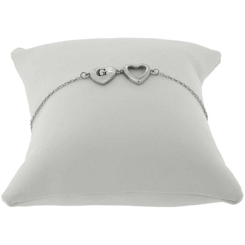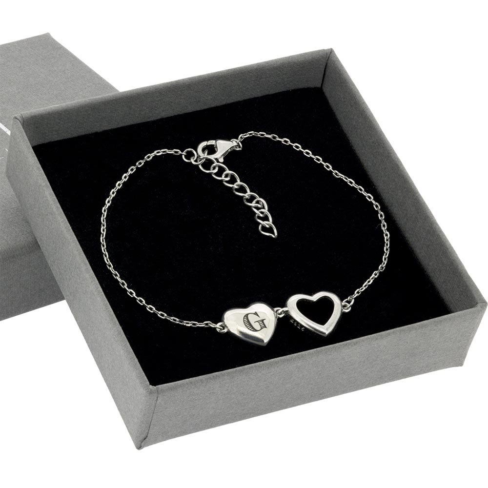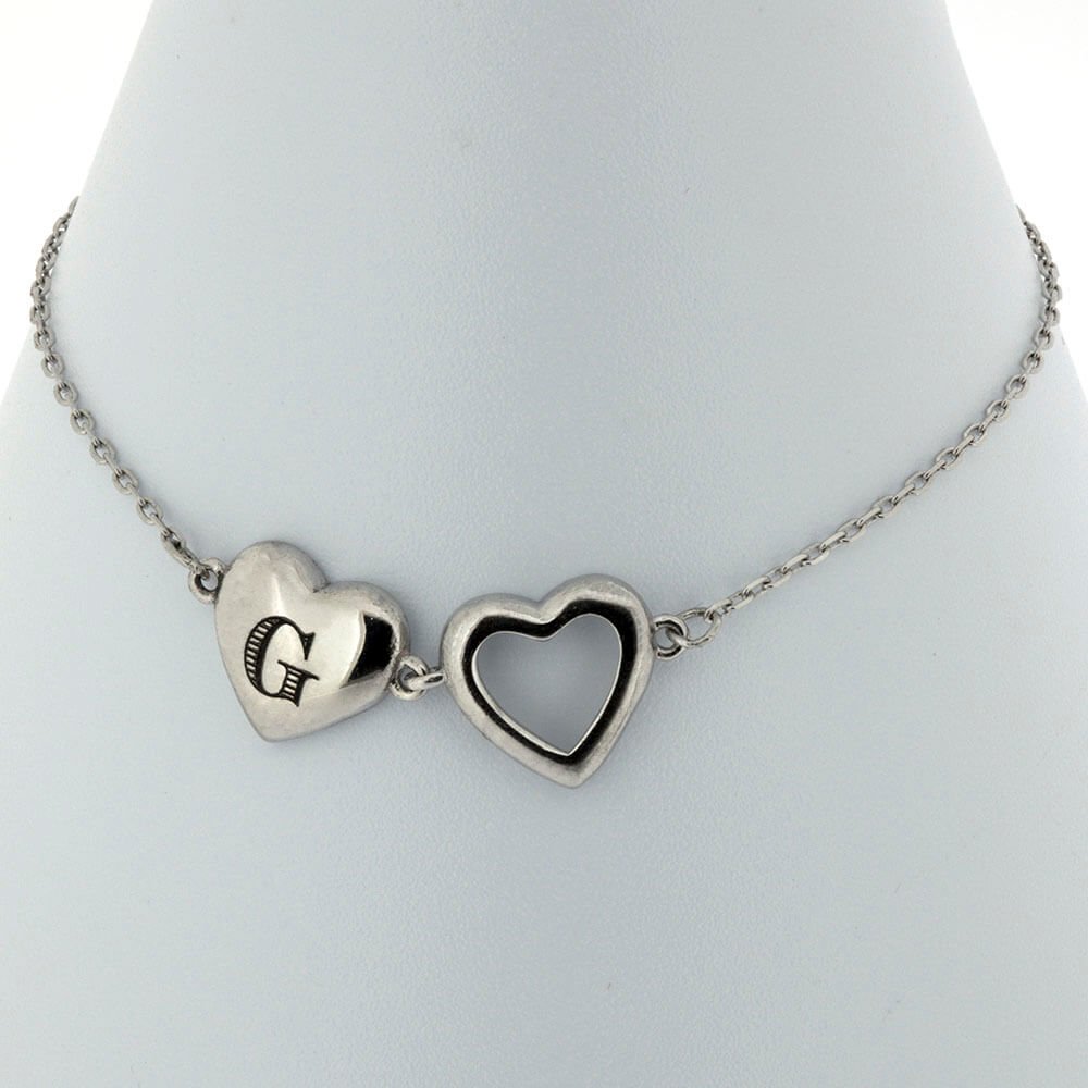 Double Heart Initial Bracelet with Engraved Detailing