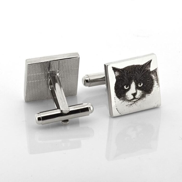 Whether it’s a perfectly captured pawprint, the unique detail of a noseprint, or a cherished photo, we carefully engrave your pet’s image onto a pair of stainless cufflinks (sterling silver also availabnle) with precision and care. Each cufflink is crafted to preserve the one-of-a-kind essence of your pet, transforming their imprint or portrait into a wearable piece of art.