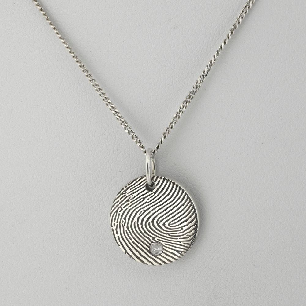 Sterling Silver Fingerprint Pendant with CZ Stone