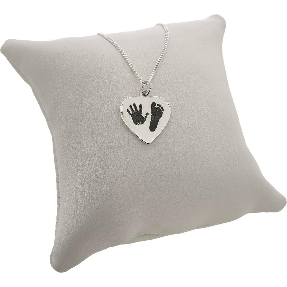 Sometimes, simple is the most elegant. Capture your loved ones hand and/or footprint in an engraved sterling silver heart shaped pendant for a truly personal gift to be treasured a lifetime. Available in 3 sizes.