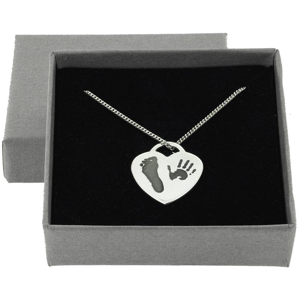 Sometimes, simple is the most elegant. Capture your loved ones hand and/or footprints and an optional name on an engraved sterling silver heart shaped pendant for a truly personal gift to be treasured a lifetime.