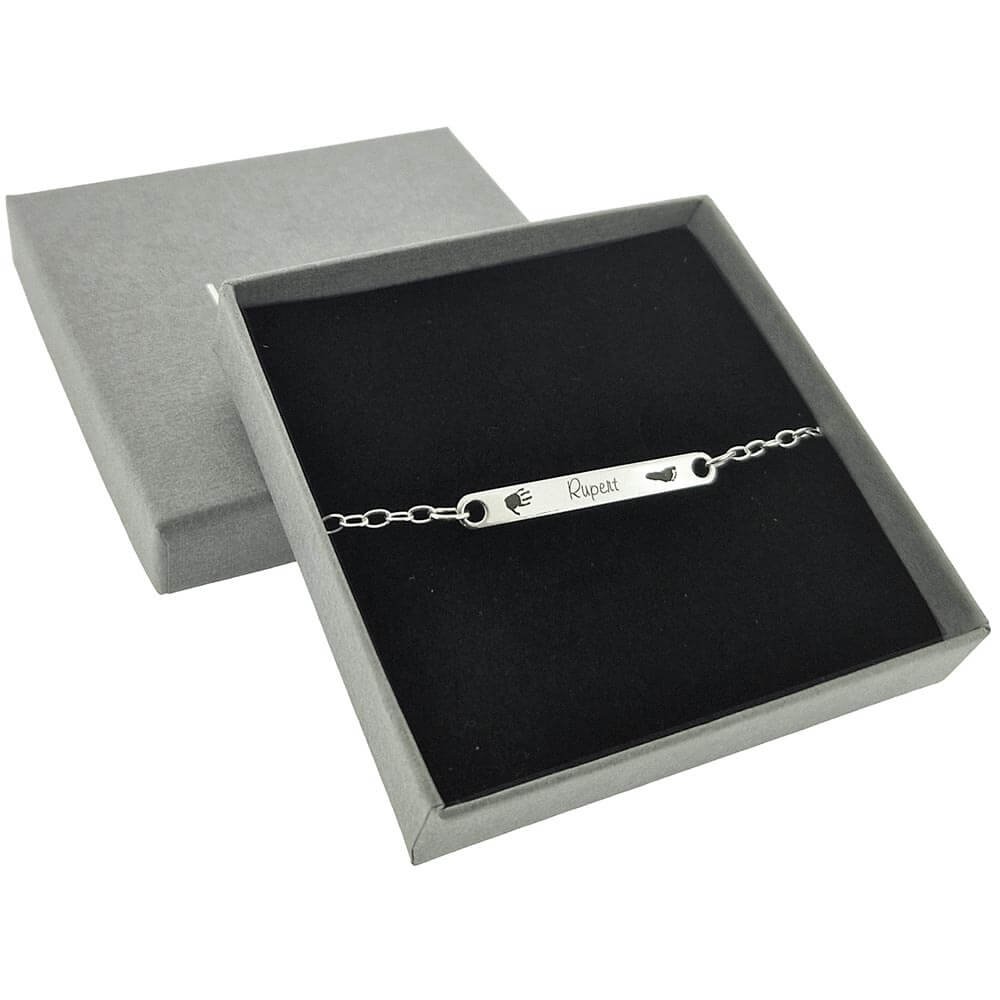 Sterling Silver Name Plate Bracelet with Hand / Footprint Engraving